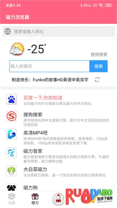 1、一款手机磁力下载软件,在本站下载安装磁力云搜索引擎