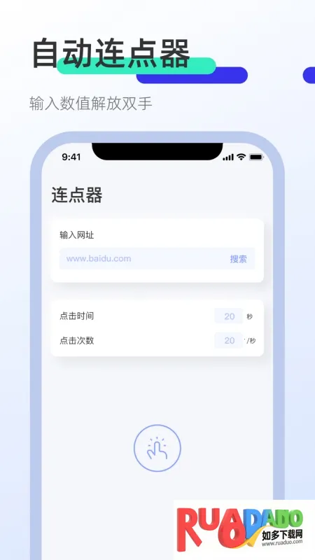 屏幕连点器安卓手机版可模拟人工点击屏幕,支持多种点击方式与丰富参数设置。有自动定时、手势选择等特色,能帮游戏玩家自动操作,还可用于刷视频、抢东西等,操作简单方便,无需root权限。