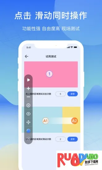 2. 具备手势选择,支持不同手势下的自动点击功能,包括双击、滑动、截图等。