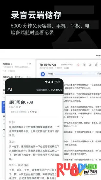 3. 具备语气词重复词过滤、字词纠正、智能排版等功能,可区分说话人,通话记录能保存至云端。