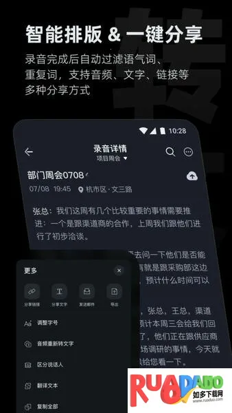 2. 通话结束后可导出音频和文字,方便编辑处理。