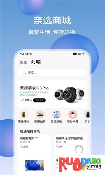 3. 内置荣耀亲选商城,方便用户发现和购买更多优质智能产品,还能推荐多样化场景应用,丰富用户体验。