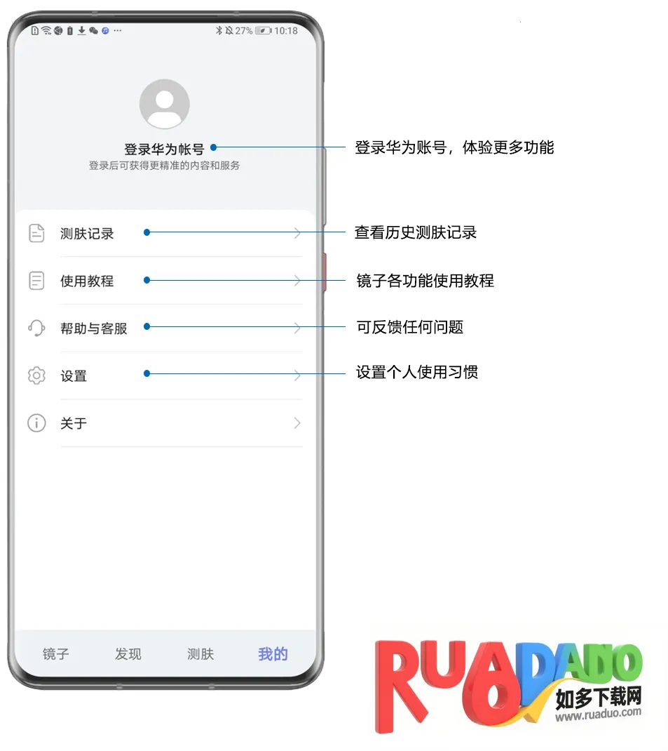 华为镜子是华为手机自带的镜子工具软件,界面简单干净。有实时镜像、智能肤质分析、个性化护肤方案、好物推荐及美妆教程等功能,操作简单,画面高清,能让手机变化妆镜,满足多样需求,还保护隐私。