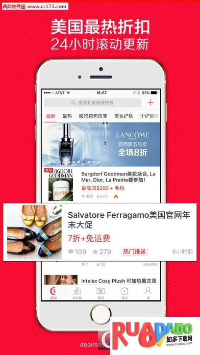 2、每4小时不间断播报热门折扣,北美双11有110家大商家独家折扣。