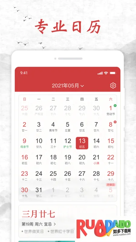 3. 有着全面的各种时间内容,所有法定节日以及传统节日一目了然。