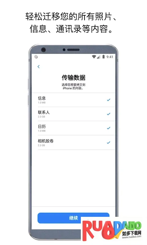 2、安全传输手机数据,全部完好无损转移到苹果手机。