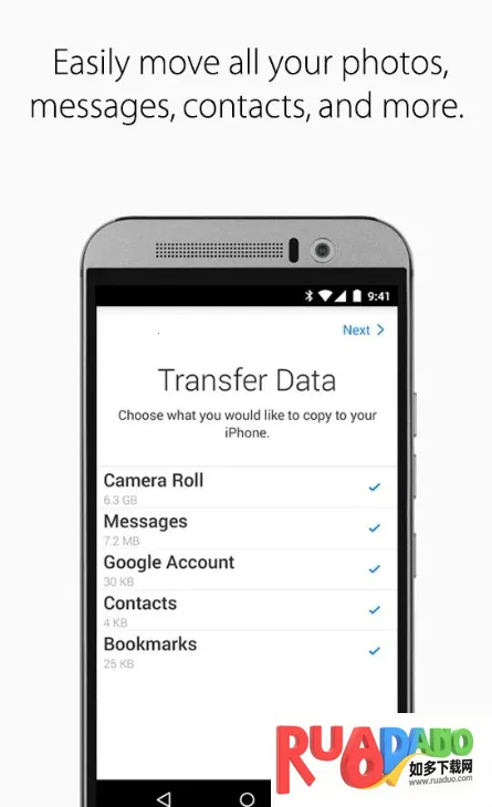 2. 助力安全传输手机数据,完整无损转移至苹果手机。