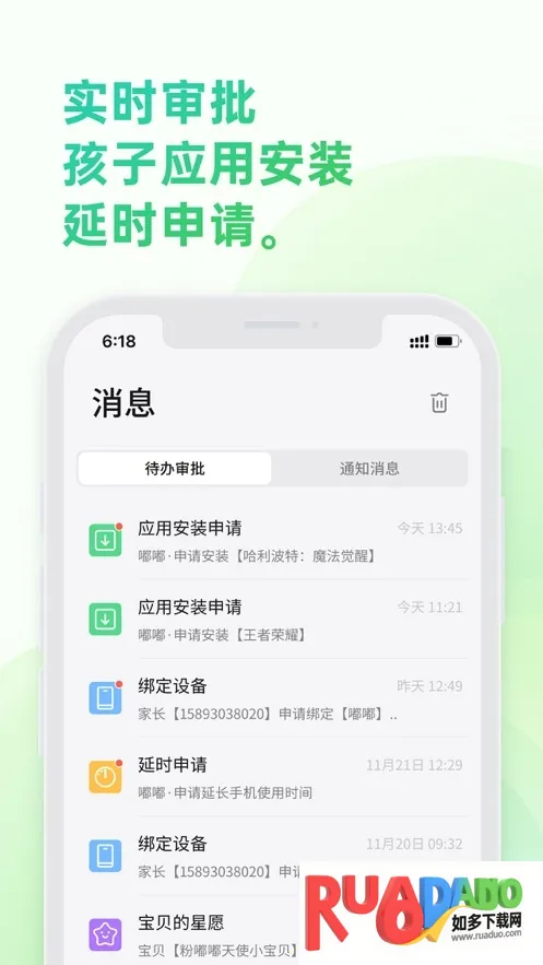 1. 使用详情一目了然,随时查看孩子手机使用情况的详细记录,助力家长深入了解并针对性沟通。
