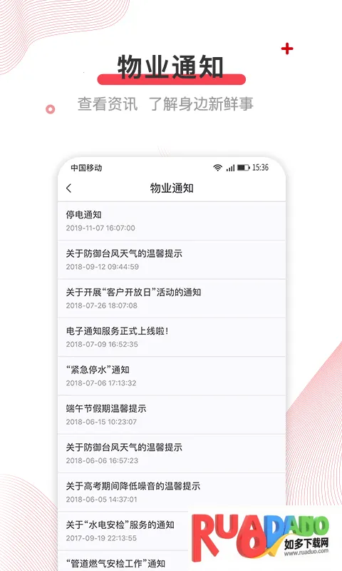 3. 可以查看物业公告,通知信息实时推送,重要消息第一时间知晓。