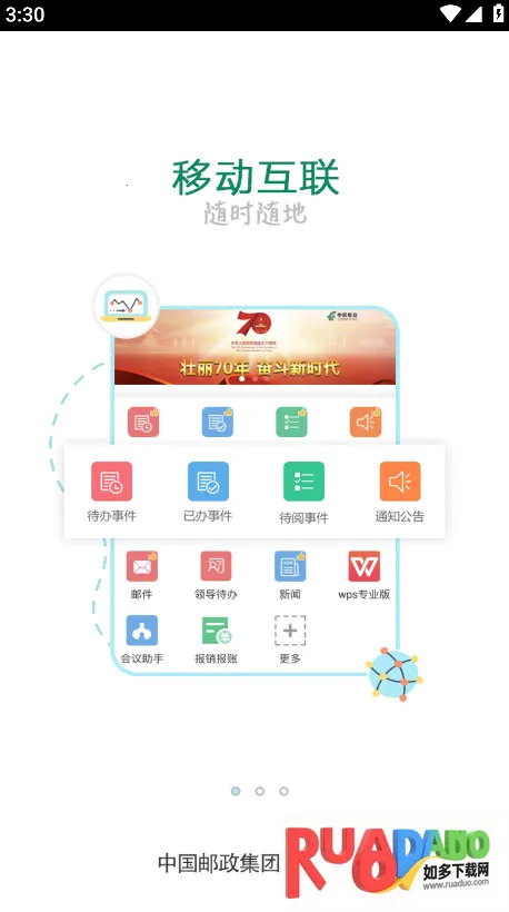 1. 专为邮政工作人员设计,功能丰富,涵盖公文审批、邮箱、通讯录、打卡等,能提高工作效率。