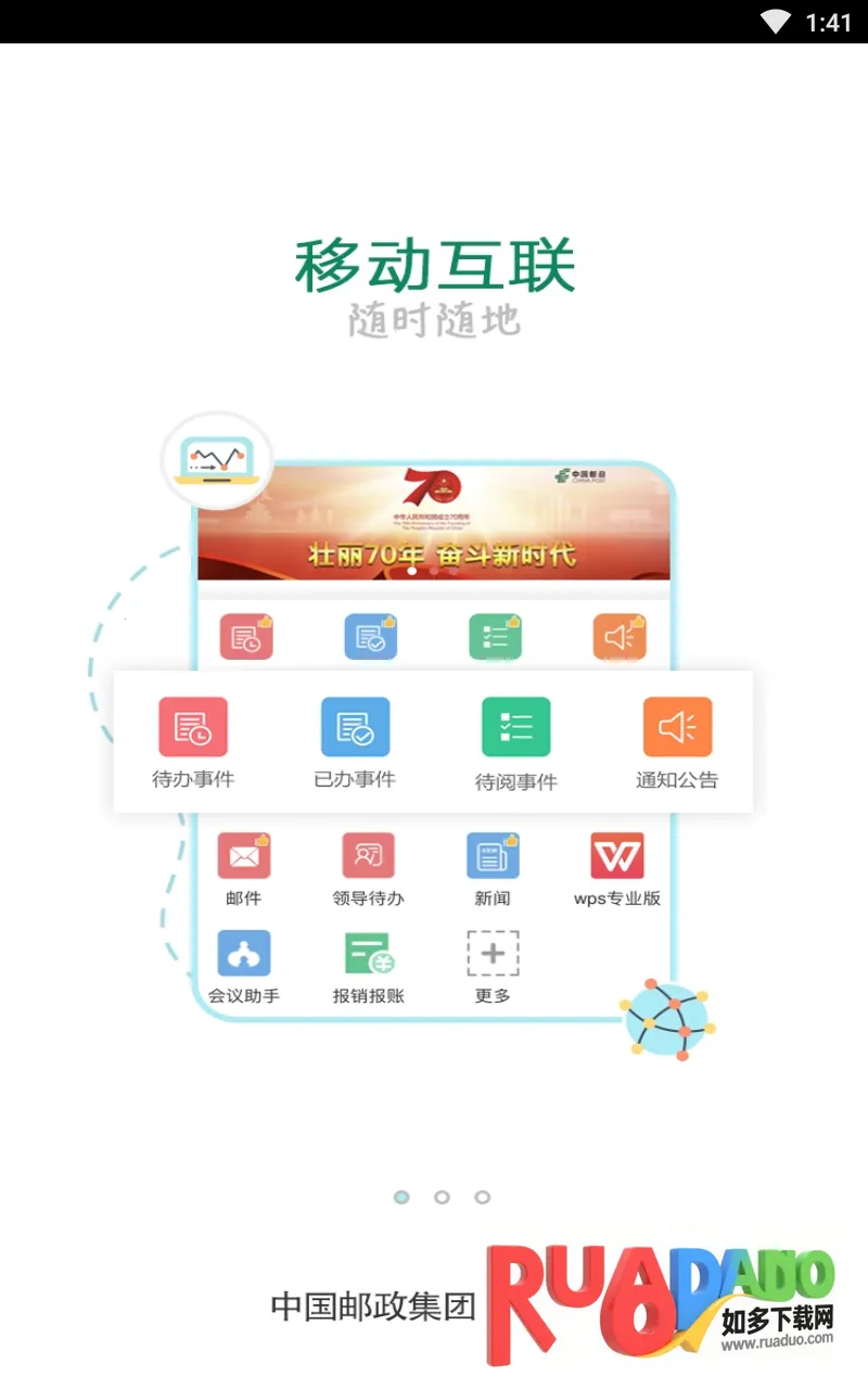 邮我行是中国邮政集团掌上办公官方 APP,专为邮政工作人员设计。具备公文审批、邮箱、通讯录、打卡等功能,支持网点查询、运费估算,能移动协同办公,提高效率,促进交流,方便获取邮政信息。