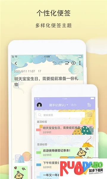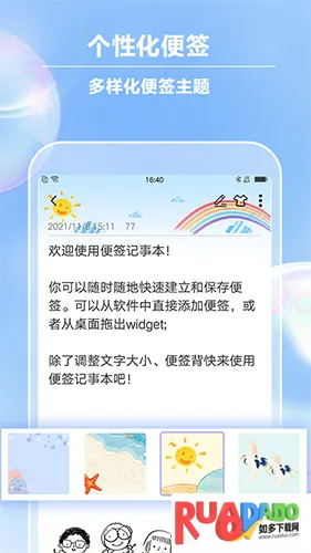 1. 它设计简约功能实用,能按颜色分类便签,设置皮肤,还能通过便签夹归类分档,让便签条理有序。