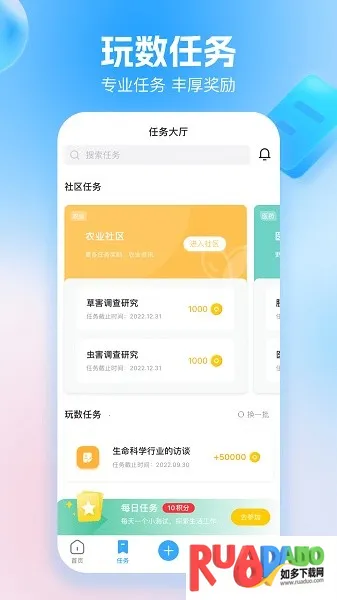3. 有涵盖社会生活各方面的海量任务,通过完成任务可获积分奖励。