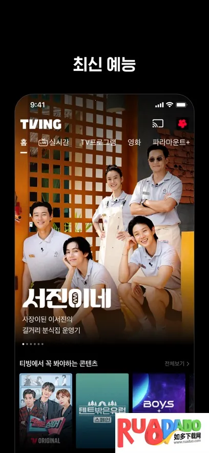 TVING是一款超棒的视频播放软件,能满足你对韩剧、综艺等的观看需求。这里有海量韩国电视剧、综艺资源,播放超流畅,全高清画质超清晰。不管是热门经典韩剧,还是最新的综艺,都能第一时间观看。它还会根据你的观影历史和兴趣偏好推荐合适内容,提供个性化体验。不仅能在线看,还支持离线欣赏下载的内容,方便随时观看。而且能免费观看多个直播频道,一次最多创建4个配置文件。在不同设备间切换也能自由享受观看。操作简单,打开应用登录账号,设置里改下语言就能轻松浏览各种影视内容,还有丰富筛选和搜索功能助你快速找到想看的。总之,TVING让你轻松畅享各类韩剧综艺,享受高品质视听体验。