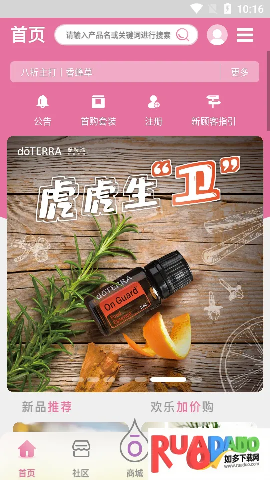 多特瑞App是个超棒的精油平台!在这里,你能轻松了解多特瑞精油的功效与用法。它有丰富的知识科普,详细介绍各款精油功能和使用贴士,帮你快速掌握。比如乳香精油、薰衣草精油等,都能清楚知道好处。平台提供大量精油商品,单方、复方、个人护理等分类齐全,满足多样需求。购买超方便,支持在线支付、订单查询和物流跟踪。还有社区互动,能和其他用户交流心得。像呵护宠爱套装产品可直接涂抹,安全方便;椰子油分享套装能稀释其他精油。备考加油站套装能帮孩子集中精神、专注学习、放松考试。注册成优惠顾客,享会员价、积分兑换等权益。总之,多特瑞App让你轻松探索精油世界,享受高品质生活。