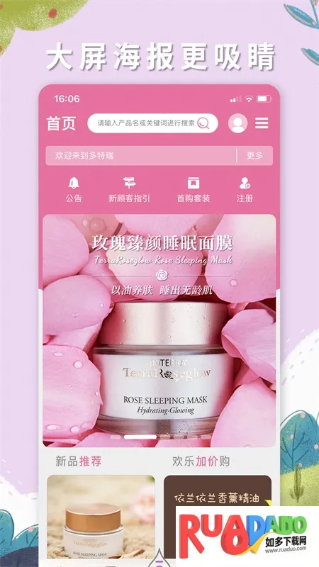 多特瑞App是多特瑞上海商贸有限公司开发的综合性应用,集精油购物、知识科普、社区互动于一体。提供多样精油商品,有品质保障,界面简洁操作便捷,还能让用户了解精油知识、享受专属权益,融入精油生活。