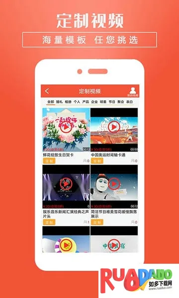 1. 海量模板任你挑,可随时定制所需视频。