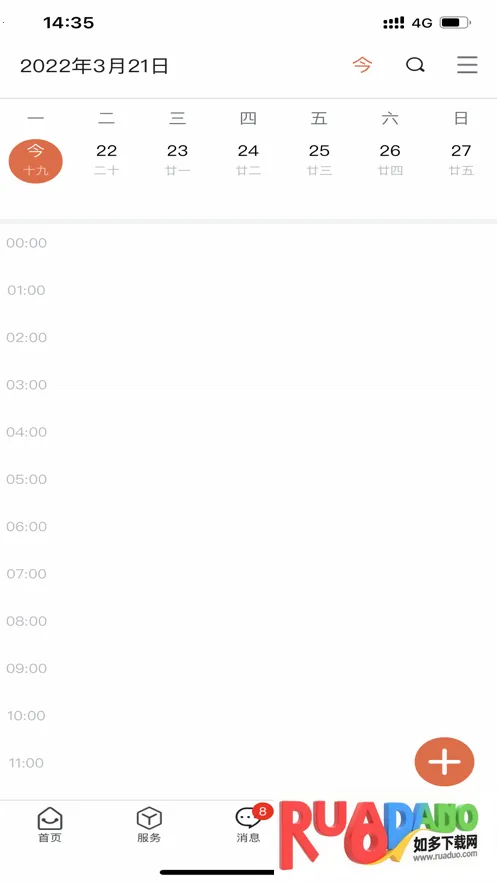 3、拥有多种功能模块,如首页、服务、业务、日程安排、我的等。
