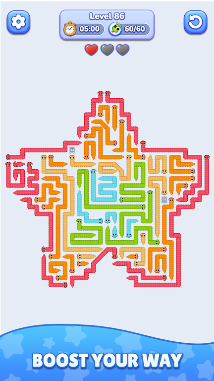 蛇摆大师是一款充满挑战的迷宫游戏,玩家操控蛇穿越迷宫找出口。玩法直观,关卡多样,有时间限制与心脏系统,画面简洁。适合各年龄层,MOD版去广告且有变速功能,带来全新体验。