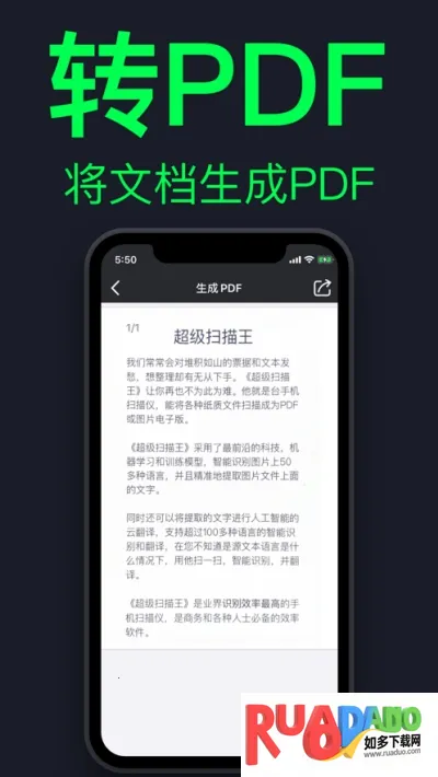 3. 手机轻松变身扫描仪,无需电脑或数据线,一拍生成高清PDF或图片,随时记录重要文件。