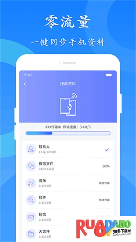 2. 极速秒传,1分钟闪电换机,传输速度是蓝牙的50倍,秒传多种文件。