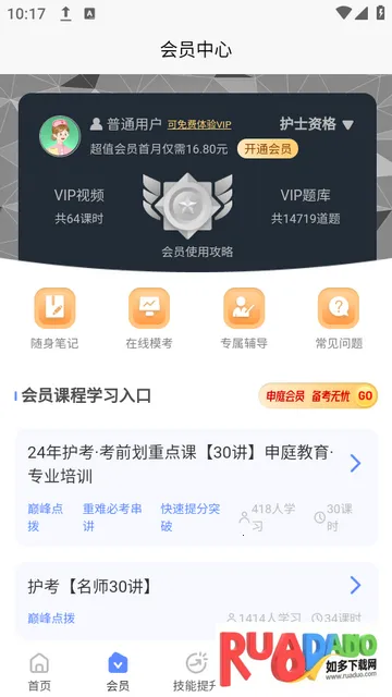 2. 提供免费全面海量的在线题库与在线视频教学服务,看视频做题一个 APP 全部搞定。