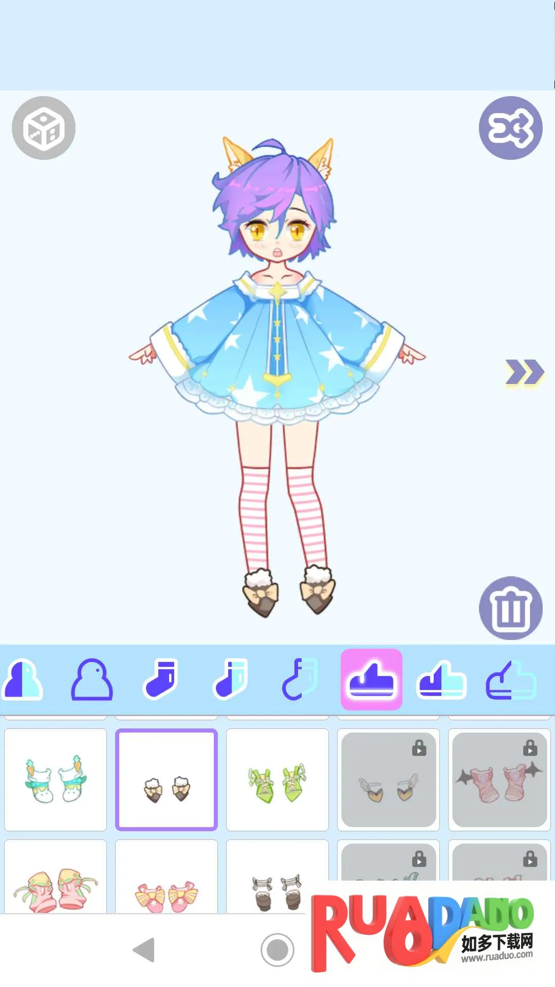 可爱的动漫换装游戏十分有趣,玩家可尽情发挥想象。除了装扮人物,还能搭配背景。丰富多样的物品与组合方式,让玩家随意解锁尝试。而且点击物品就能快速应用到人物搭配上,直观又便捷,能轻松打造出各种独特造型,开启独特的装扮之旅,享受其中的乐趣,创造出独一无二的形象。