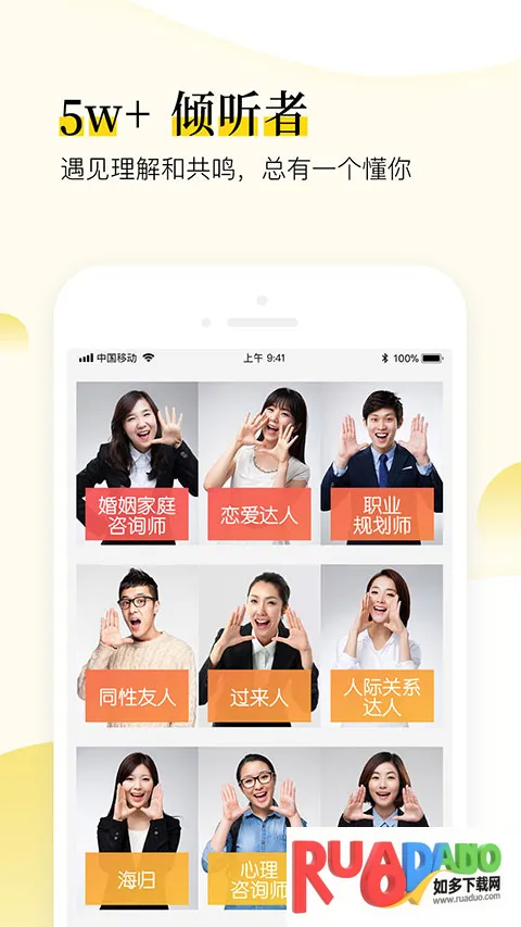 1. 这里汇聚超10万名经过严格筛选的倾听者,涵盖情感咨询师、婚姻家庭咨询师等多元专业背景,能帮用户解决恋爱、婚姻、家庭等现实问题。