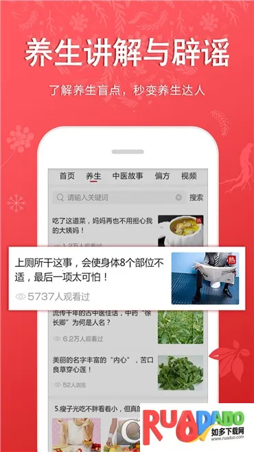 1. 听会儿中医app专注中医健康养生领域,汇集大量养生知识。