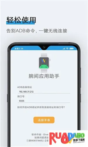 腕间应用助手2026最新版本是可视化adb调试工具软件,可一键无线连接手机与小米等腕表,利用adb命令原理实现手表应用安装,操作简单,告别复杂命令行,适配多品牌手表及安卓11系统,功能强大,资源丰富。