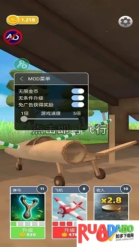 2. 飞行途中能获取金币奖励,可用于购买升级机翼、发动机和机身等部件。