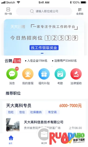 天大云聘是手机求职招聘平台,每天更新海量真实招聘信息,提供海量优质企业与求职者。有多样招聘功能,能让求职者轻松找满意工作,在家随时投简历申请就业,还能帮企业招到合适人才。