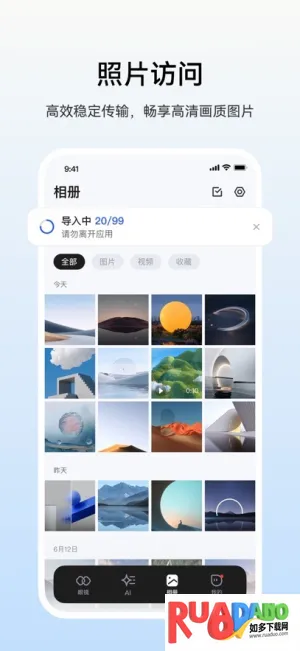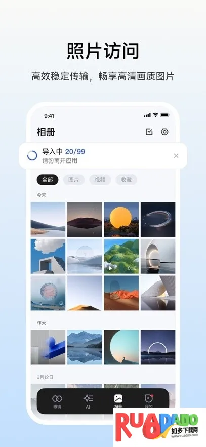 2. 支持多种内容管理与分享,可推送照片视频等到眼镜端观看,享受大屏震撼视觉效果。