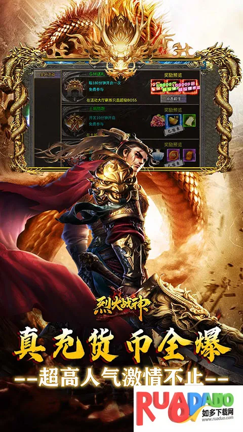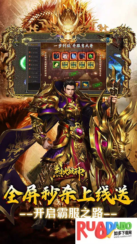 烈火战神2026官方正版是继承传奇经典战法道职业的手游。自带散人福利,登录领千万元宝。有剧情炼丹玩法,打怪爆真充。含多种特色内容,如跨服boss等。还有多样福利及玩法攻略,装备全靠爆,能自由交易,多人同屏激战。