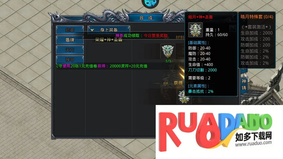 1、对装备进行合成可大幅增加其基础属性。