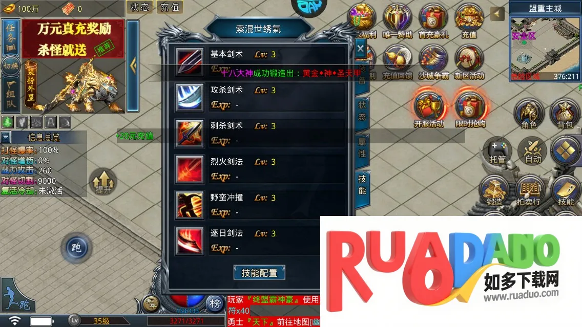 1. 自带各种散人福利,登录千万元宝拿到手软,还有高阶道具等,开局可称霸全服。
