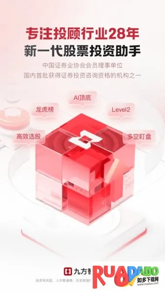 九方智投是上海九方云智能科技有限公司打造的投资理财工具,界面直观功能全,有AI智能诊股等。能梳理资讯、智能推送,提供实时分析与资讯,还有直播解盘,助股民掌握动态、挖掘机会、减少风险。
