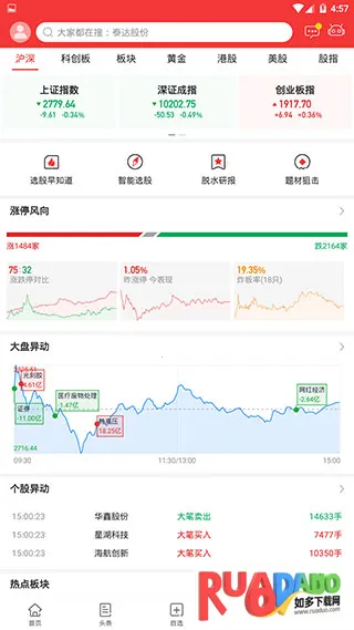 3. 风口机会:热门板块投资情绪实时追踪,头条资讯热点题材机会提醒。