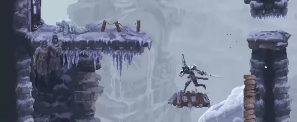 3、手绘像素艺术巅峰,角色动画帧数达24帧秒,场景采用16层视差滚动,像素颗粒感与光影动态结合,哥特美学表现力强。