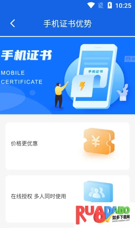 2. 一键式认证。企业下载APP就能在线申请CA数字证书手机版。