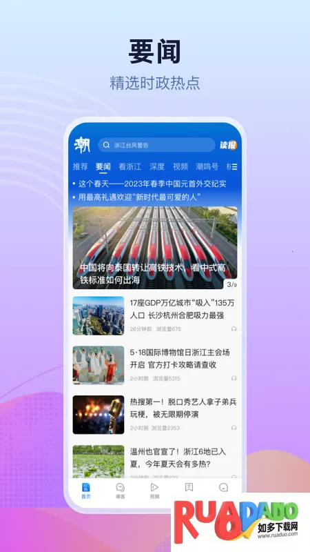 潮新闻是一款超棒的新闻软件。它属于浙江日报报业集团打造的媒体平台。能解决你想及时了解各类新闻的需求。功能超丰富,有海量新闻资讯,国内外的都能实时呈现,还划分了八大频道便于浏览。有直播观看功能,能在线看实时直播视频;一键关注可获取最新动态。能根据用户喜好区分汽车、文娱、科教、体育等多个模块新闻。每个新闻都有详细报道,还有评论区方便大家互动交流。会按网友定位推荐当地新闻,还提供很多短视频新闻,让你快速了解资讯。另外,它还有生活服务功能,比如天气预报、空气质量、实时台风消息等,能帮你规划行程。总之,潮新闻能全方位满足你获取信息和交流的需求,超方便实用。