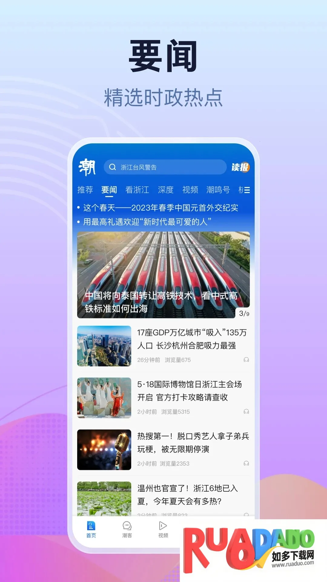 1. 潮新闻是浙江日报报业集团打造的短视频新闻客户端,立足浙江联动长三角辐射全国,以短视频传播为特色专注事件报道与热点引导,为用户提供独家深度新闻内容与服务社交功能。