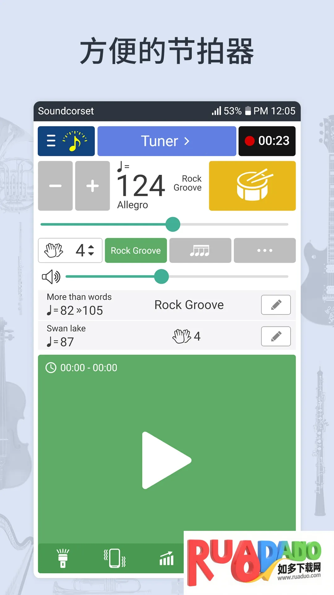 4. 节拍练习会根据学习情况变难,能帮用户成为节拍大师,且调音精准,录音可无限制保存并随时收听。