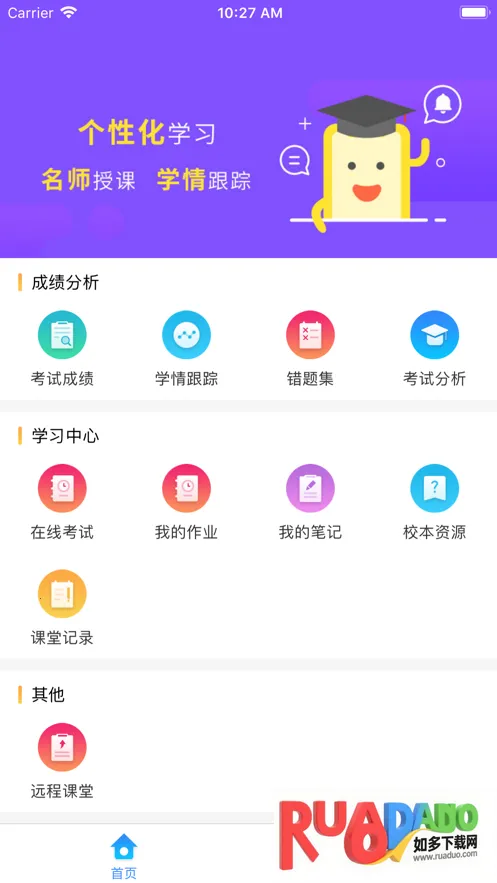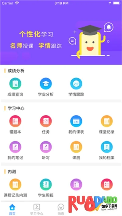 2. 提供在线成绩查询功能,绑定学校账号后,成绩公布可随时随地查阅,还能看到班级平均分与试题分析。