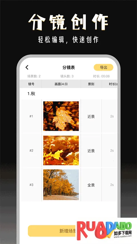 2. 提供直观且强大的拍摄界面,可依剧情分镜头拍摄,在应用内轻松后期剪辑,无需其他软件干扰。