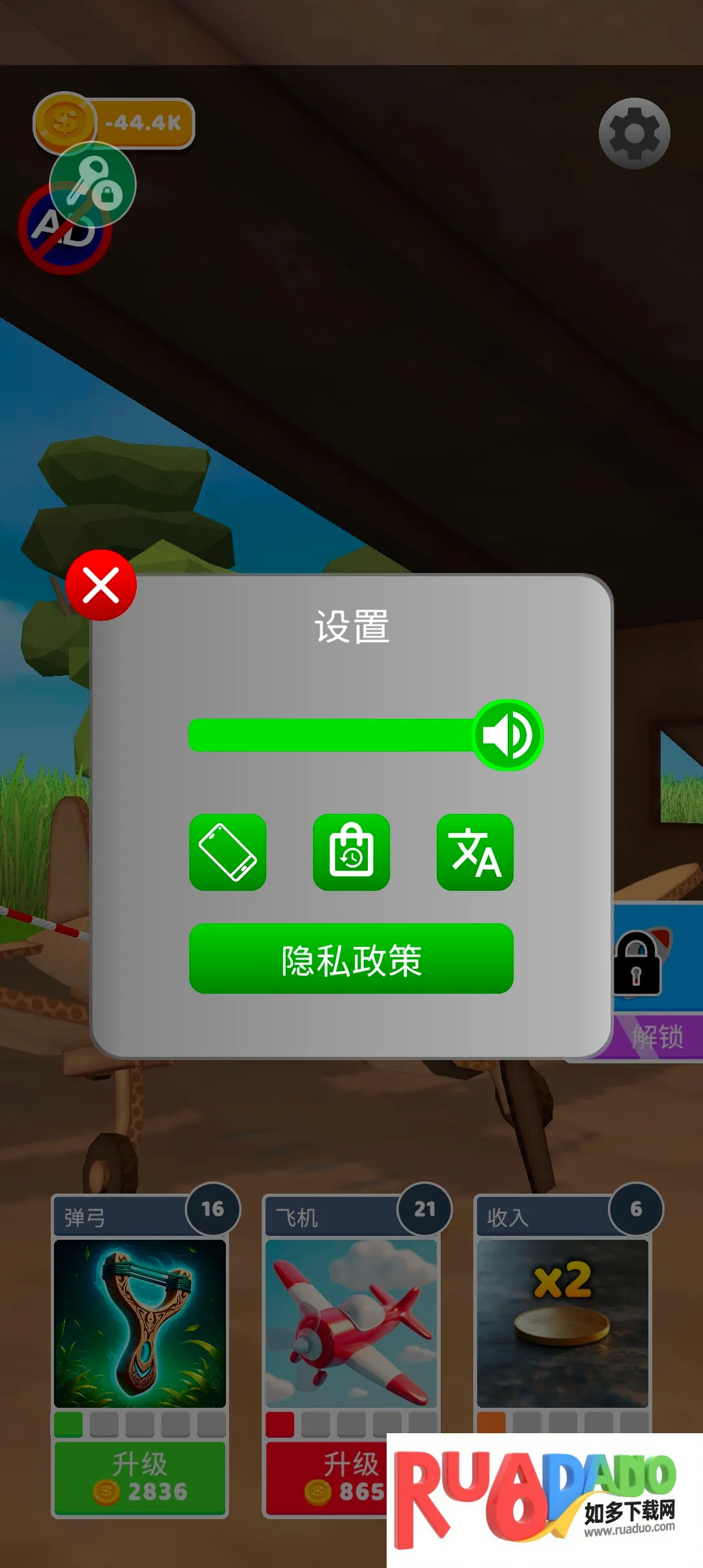 2、可通过金币升级飞机部件,增强弹弓强度,加快金币获取速度。