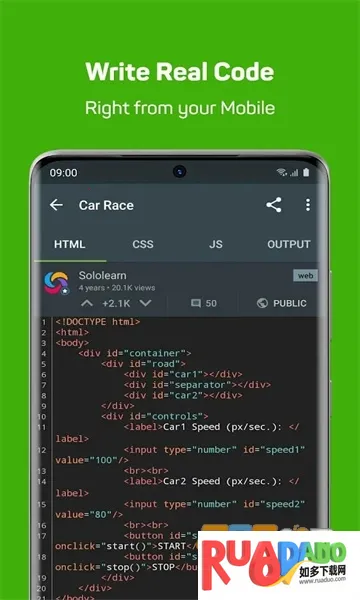 1. 学习者能在手机上借CodePlayground功能实践,程序于SoloLearn云端执行,简化调试流程。