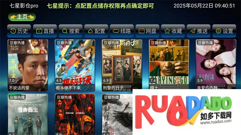 七星影仓2025最新接口配置能为影视爱好者带来超多便利。它可用于七星影仓TV版和app等软件。通过合理配置接口,能让用户轻松获取海量影视资源,涵盖电影、电视剧、综艺、动漫等各类内容。不管是国内外最新热门作品,还是经典老片,都能一网打尽。其高清流畅播放功能,提供多种清晰度和视频格式选择,确保播放不卡顿。智能推荐系统会依据你的观看历史和偏好,精准推送相似内容,提升观影体验。还支持多屏互动与离线缓存,比如手机投屏、离线下载,没网络时也能尽情观影。而且全程无广告干扰,资源更新迅速,跨平台兼容多种设备,能适配智能电视、手机、平板等。有了七星影仓2025最新接口配置,观影变得更加随心、便捷、舒适。