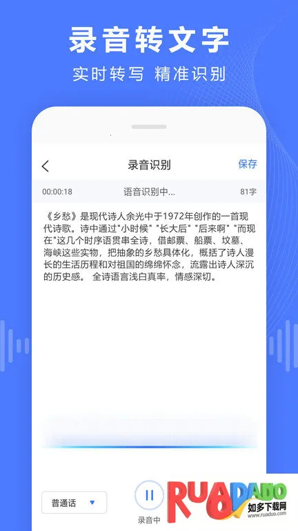 1. 操作简便,支持多种录音方式,可实时或事后将录音文件转换为文本。