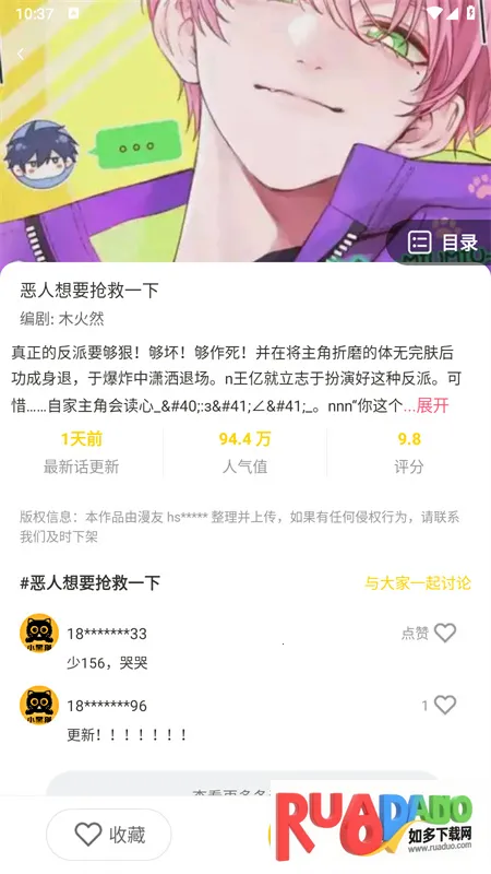 4. 连载追踪:关注喜爱作品,更新提醒即时推送,不错过精彩续集。